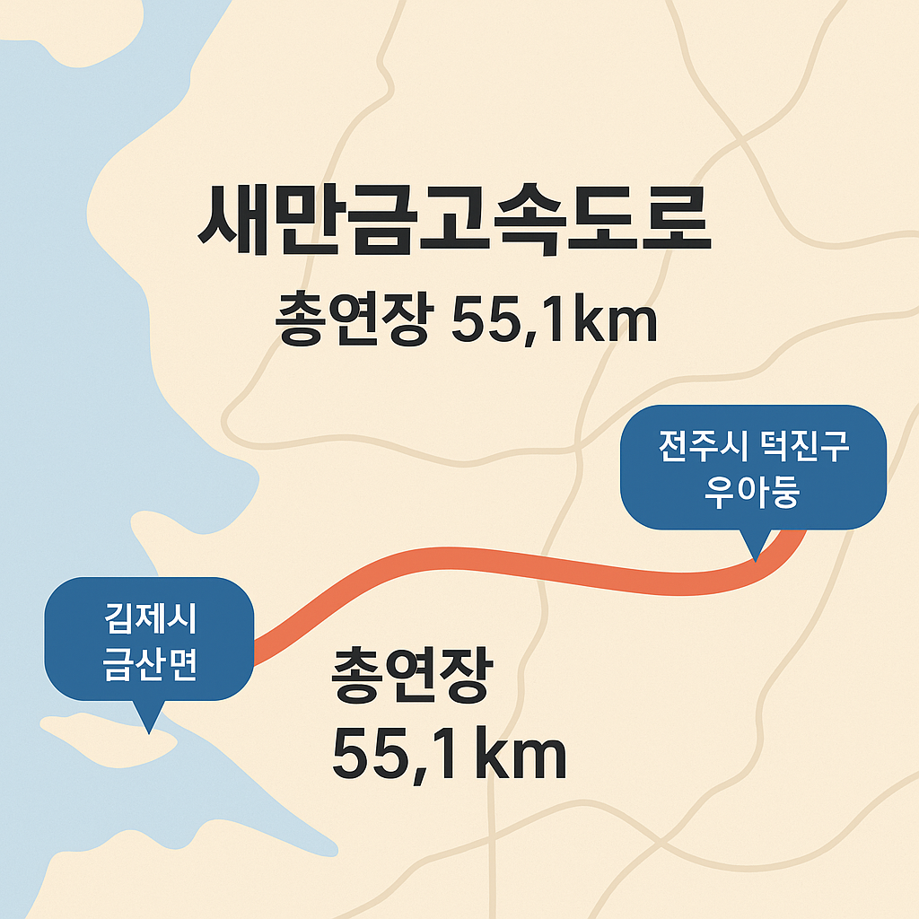 총 길이 55.1km, 김제·전주·새만금을 잇는 이 도로는 단순한 고속도로 이상의 의미를 가진다.