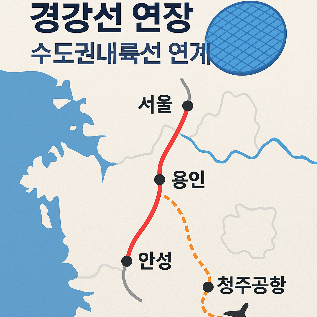 수도권내륙선은 동탄에서 시작해 안성·진천을 거쳐 청주국제공항까지 연결되는 노선입니다. 이 노선이 경강선과 맞물리면, 수도권 남부와 충청권은 하나의 거대한 생활·산업권으로 묶이게 됩니다.